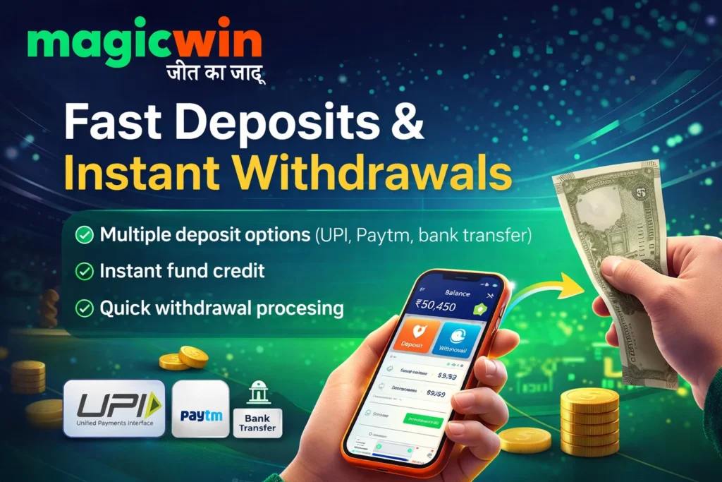 - Quick deposits via UPI, Paytm, and bank transfer